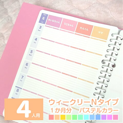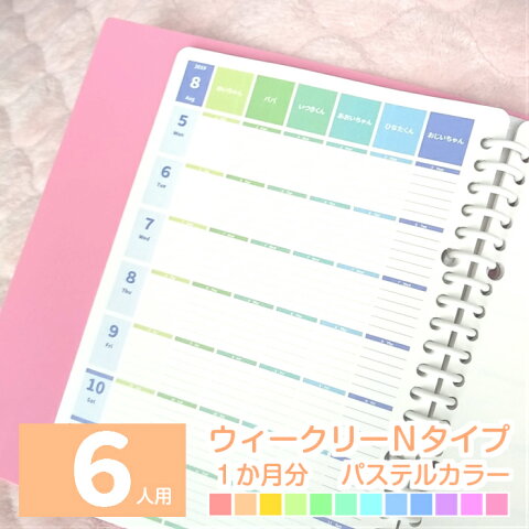 【1か月分】A5 B5 A4 家族用 中学生用 可愛い 2020年 5月始まり 月曜始まり 日曜始まり 週間 スケジュール帳 手帳 ダイアリー ママノート 家計簿 お小遣い帳 ◆ 5人用 ウィークリーN パステルカラー ルーズリーフ で作ろ♪ みんなのスケジュール【ルーズリーフのみ】