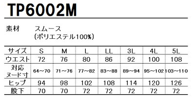 BONMAX ボンマックスNatural Smile メンズパンツTP6002Mの商品情報 作業服の商品詳細 品 番 BONMAX ボンマックス TP6002M シーズン ---素 材 スムース ポリエステル100% カラー 2 グレー 8 ネイビー ストレッチ 機能詳細一覧はこちら 作業服の色合いを上下セットで揃えたい場合、同シリーズでお選び下さい。